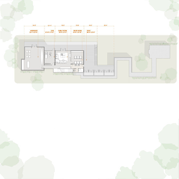 From the exterior, the rear facade expands opennly into a horizontal volumen reinforcing the idea of a residence that rests gently on the land while fully embracing its surroundings. Each level offers a distinct way to experience the landscape.