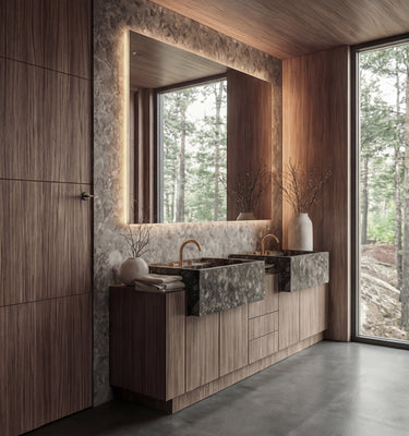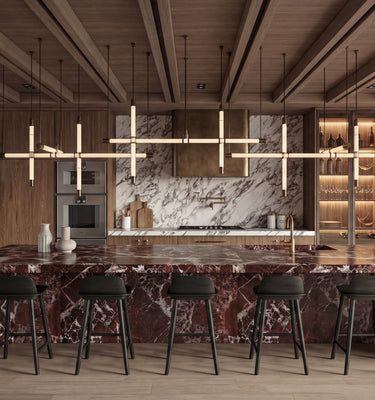 The kitchen was designed as an active, social environment where cooking becomes part of daily interaction. Its direct relationship to the living room and outdoor decks allows interior life to flow naturally outside, supporting long meals, informal gatherings, and shared moments overlooking the lake.