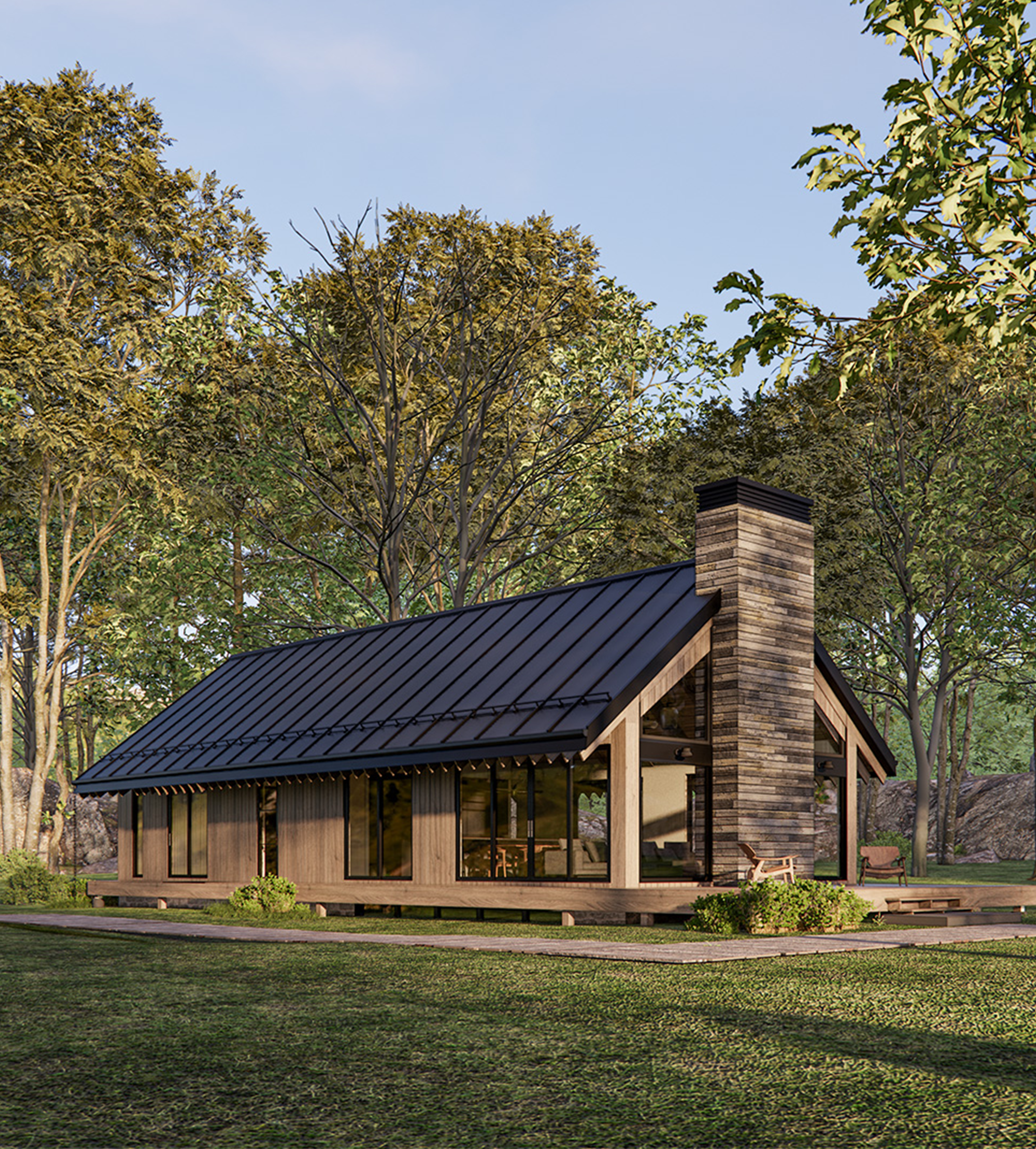 Inspired by the warmth of nature and the timeless beauty of the woods, the Falcon's Perch Single is a one-story retreat designed for maximum comfort and relaxation. The design pays tribute to natural light and beautiful views, with expansive windows that blur the lines between indoors and outdoors, creating a bright and airy atmosphere.