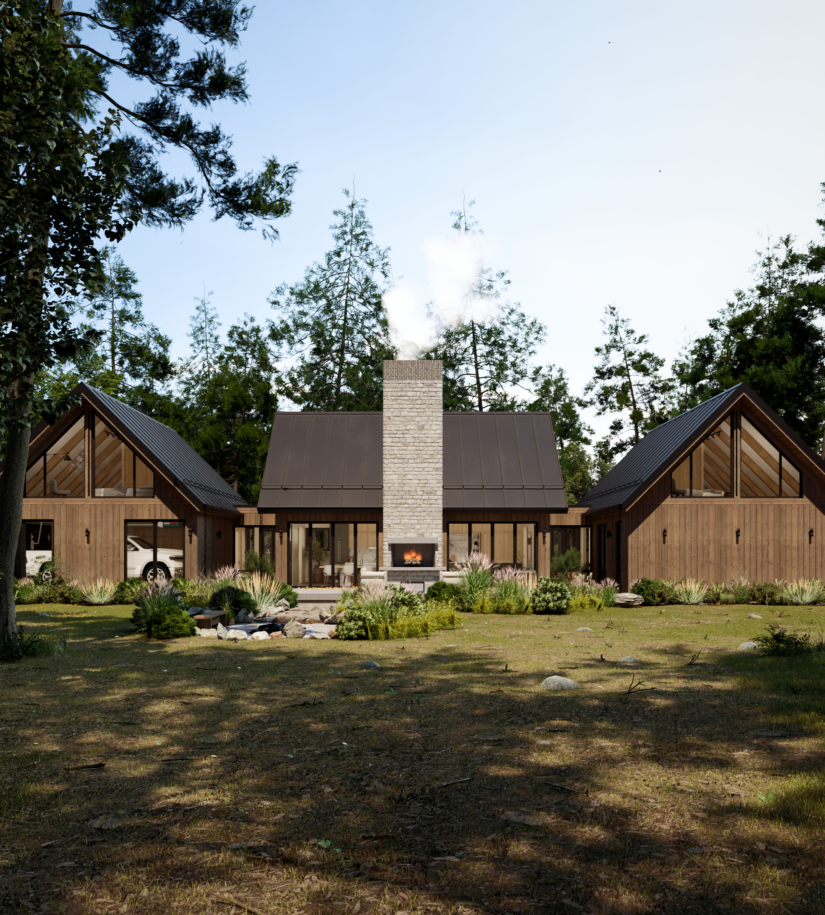 A cabin designed for those looking to build their home in phases, with three main structures connected by two breezeways this cabin was designed to accommodate future expansions in a seamless way, capable of starting as a short-term rental and eventually becoming your full-time residence.
